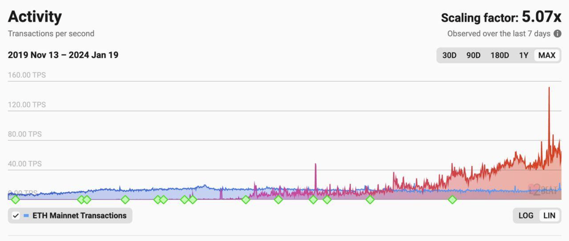 With more advanced scaling solutions (take for example Polygon’s Zero-Knowledge Rollup), an L2 Network may scale faster by NOT posting specific transaction data onto Ethereum (which comes with both a cost and time impact), but rather only posting cryptographic proof that the transaction is valid.